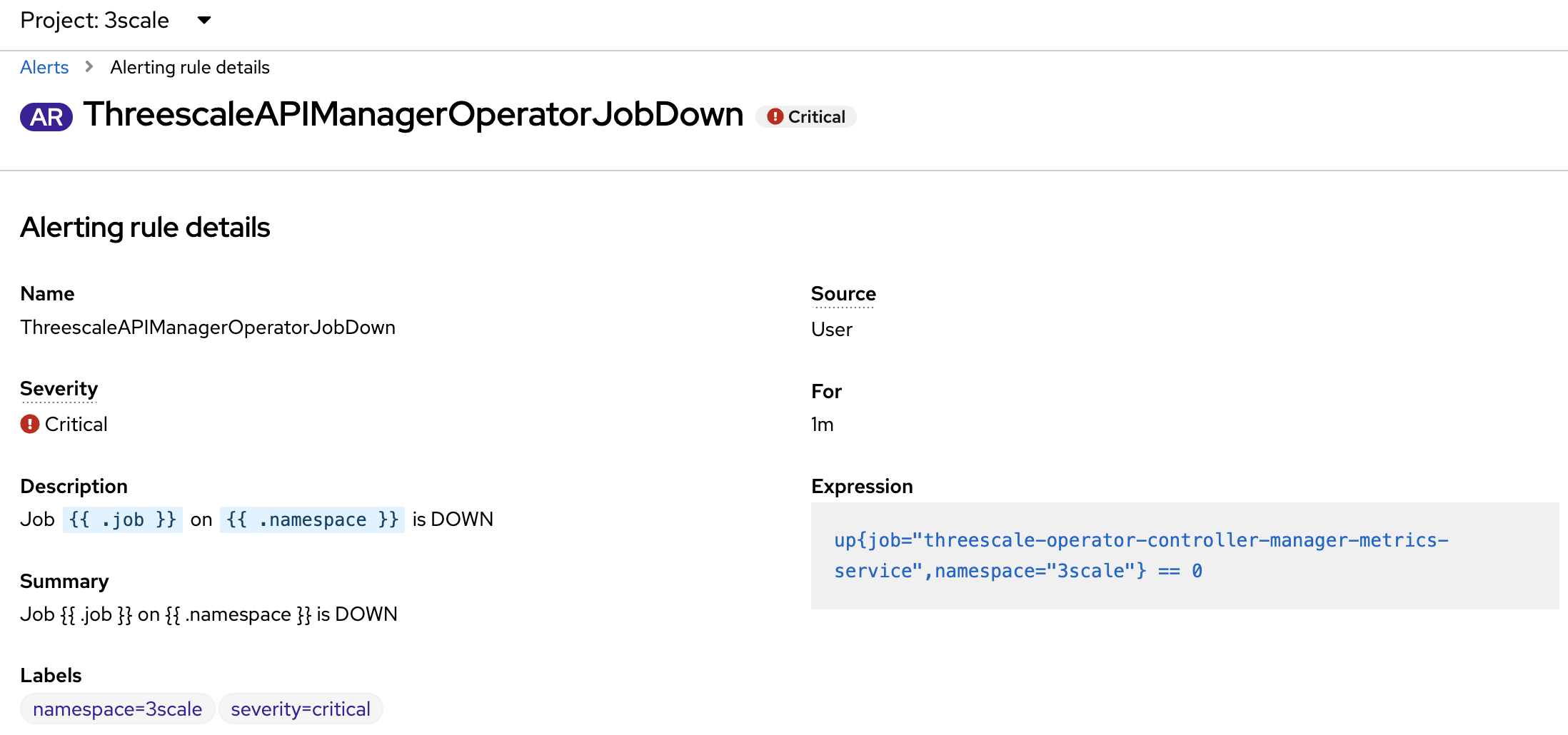 expr: up{job="threescale-operator-controller-manager-metrics-service",namespace="$MANAGER_NS"} == 0