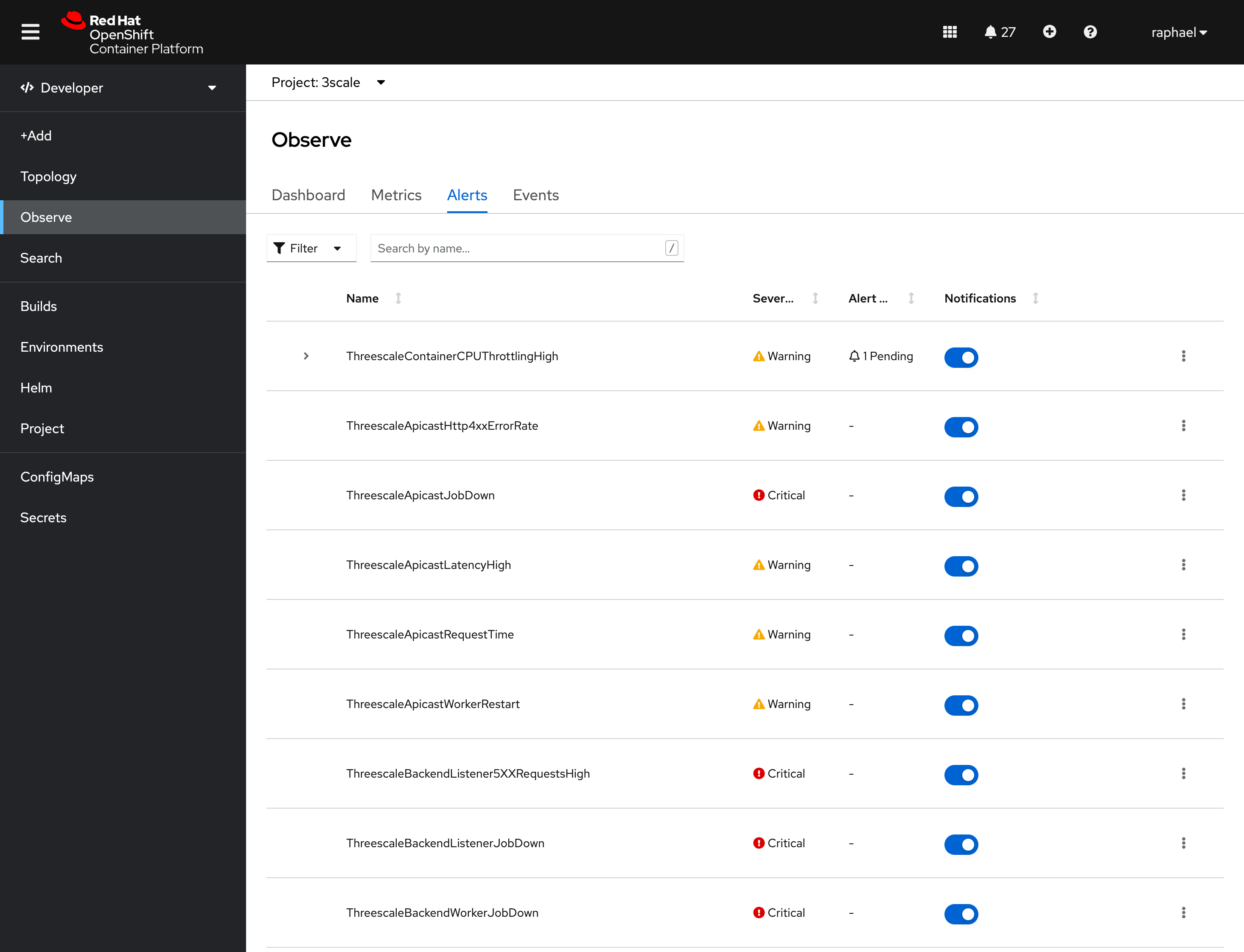 In this article, we went through 3Scale monitoring with all OpenShift monitoring provided resources. You should now be able to see all Dashboards from Grafana, monitor resources, and receive alerts with a preconfigured SMTP account.