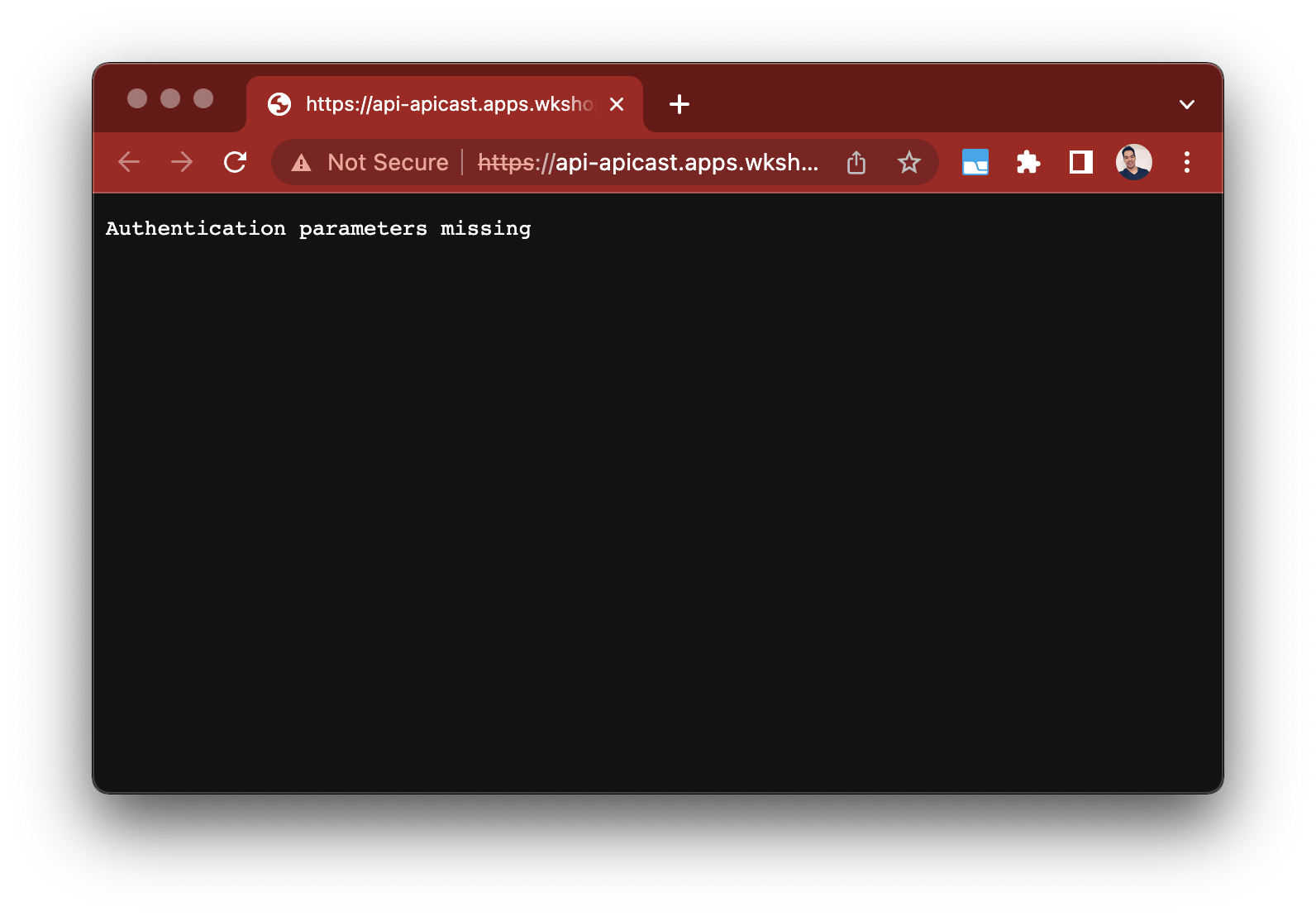 You can open the previously created routes in the browser. You should see the message Authentication parameters missing