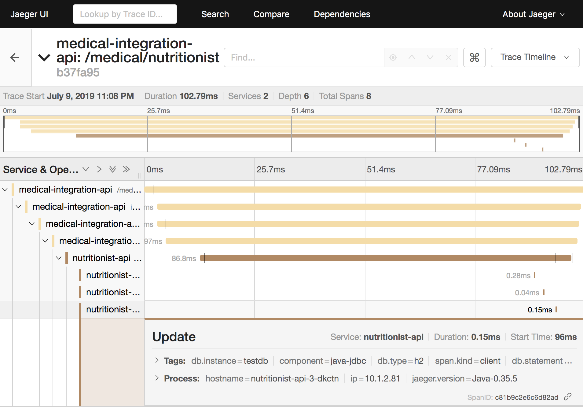 Native support for OpenTracing – Jaeger backend, Web UI, and instrumentation libraries have been designed from ground up to support the OpenTracing standard.