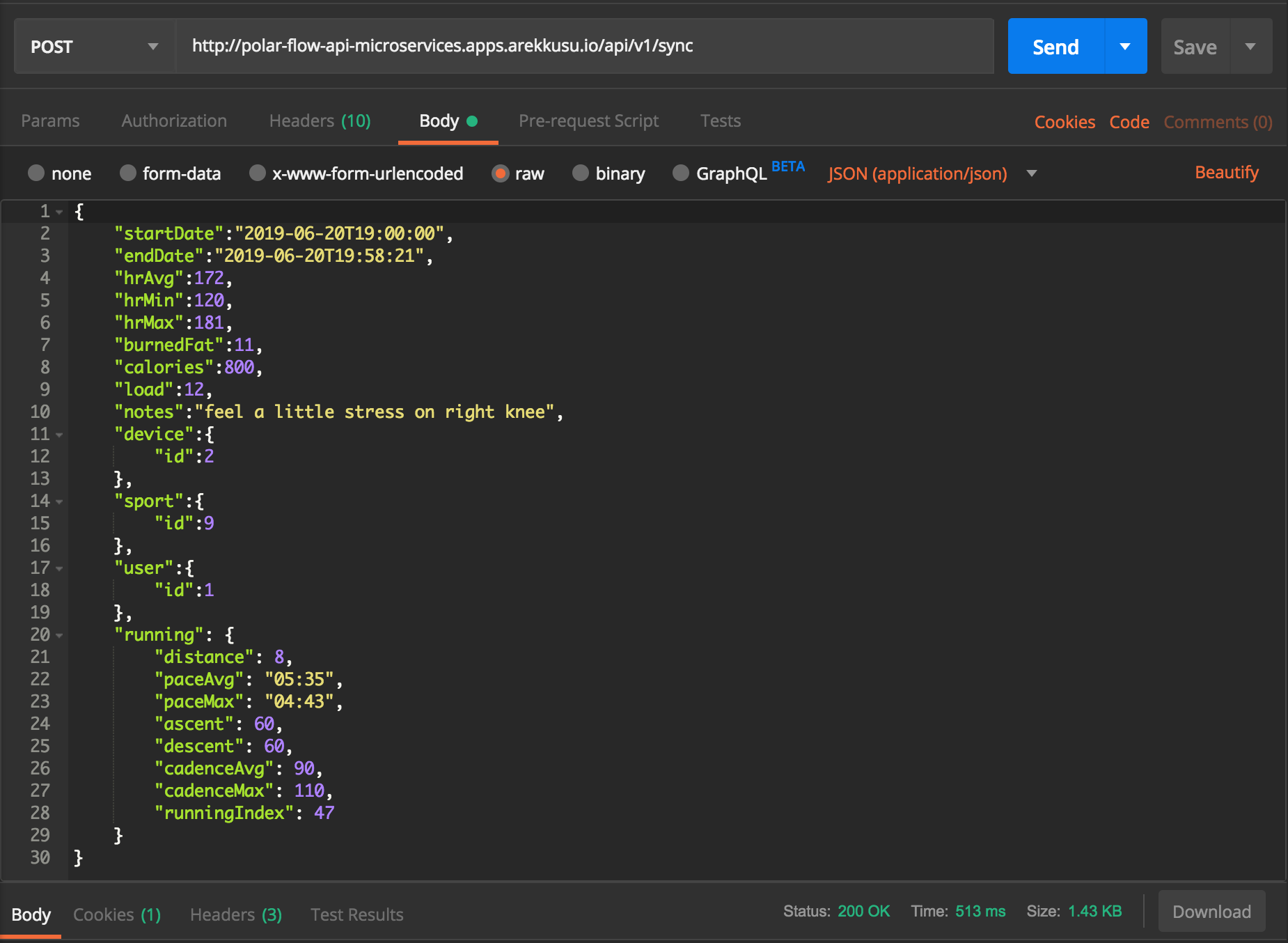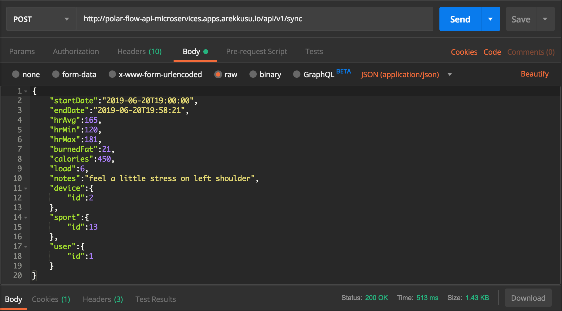 The API collects the training session data and propagates through the wire to different 3rd party "example" applications: one for running data and another reactive calendar.