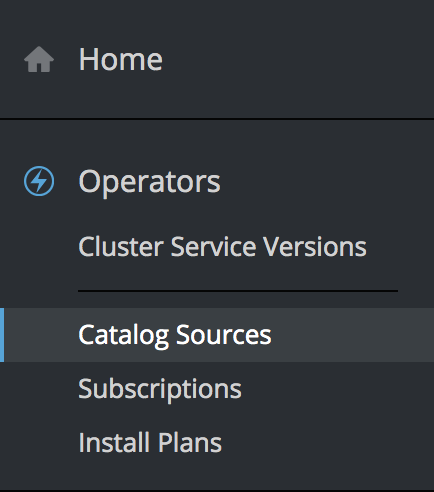 2-On the left menu, navigate through Catalog Sources, under Operators: