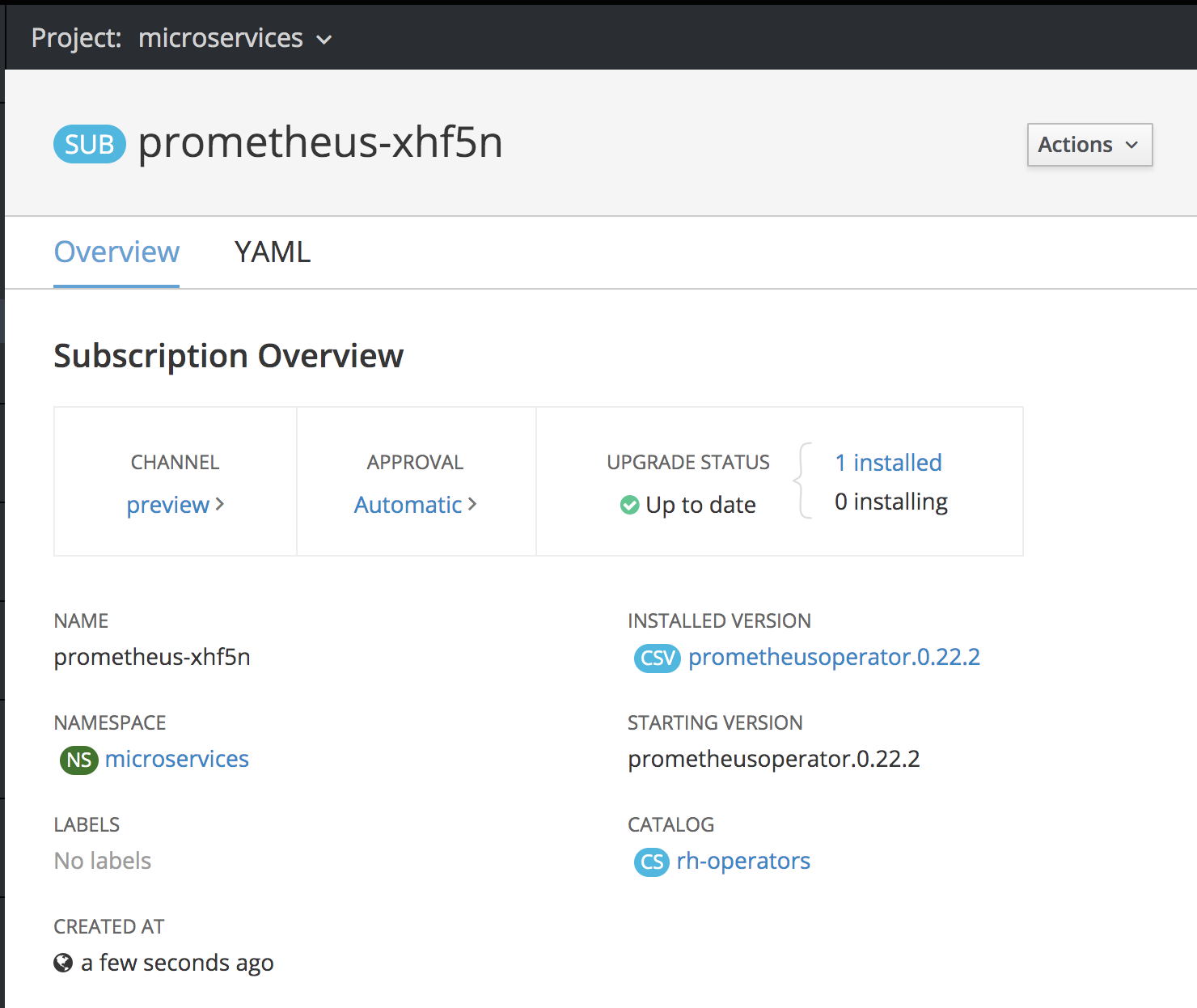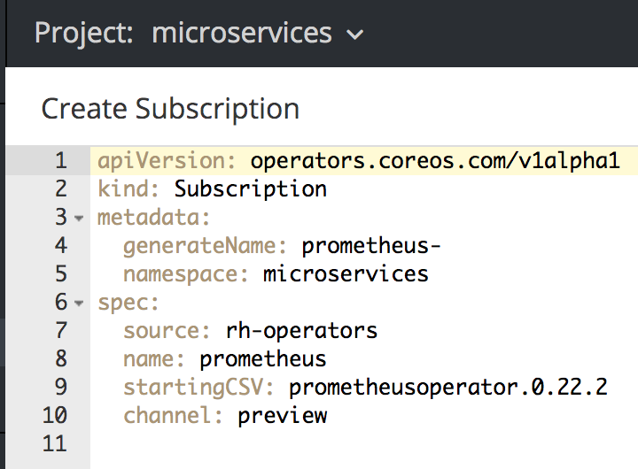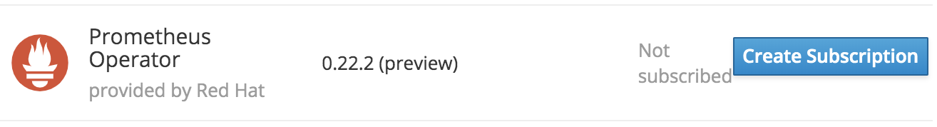 4-Under Red Hat Operators section, choose the Prometheus Operator and click on the button: Create Subscription: