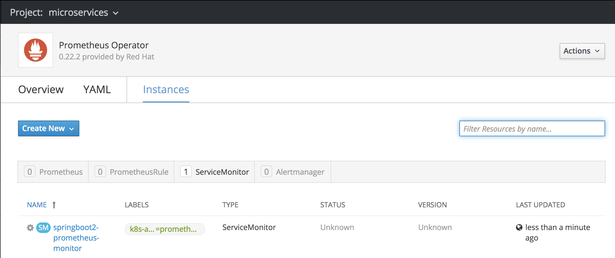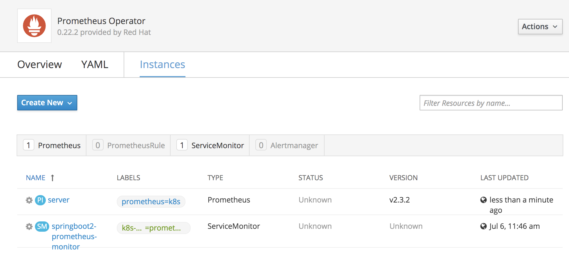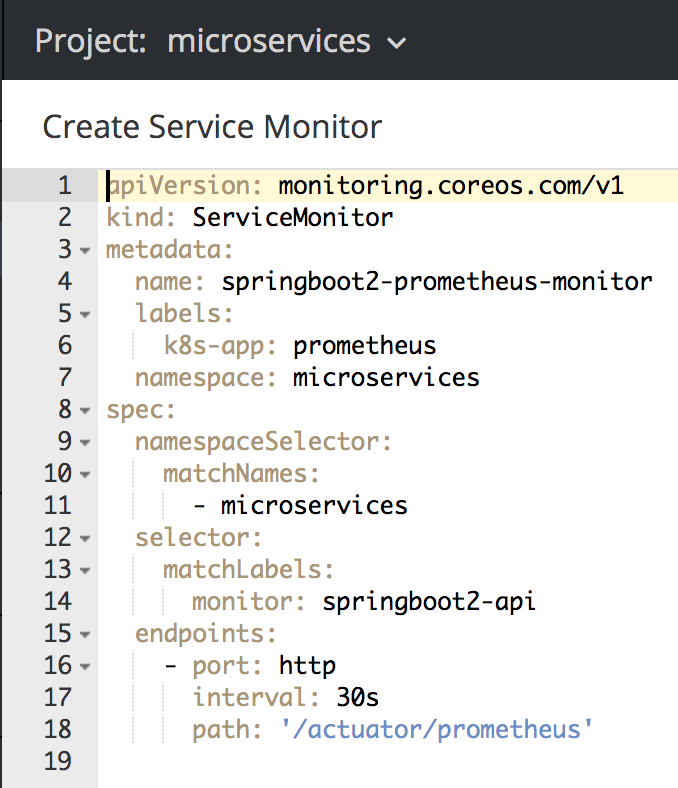 The label that will be used on all service (svc) definitions: monitor: springboot2-api
