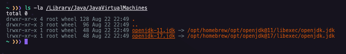 sudo ln -sfn /opt/homebrew/opt/openjdk@17/libexec/openjdk.jdk /Library/Java/JavaVirtualMachines/openjdk-17.jdk